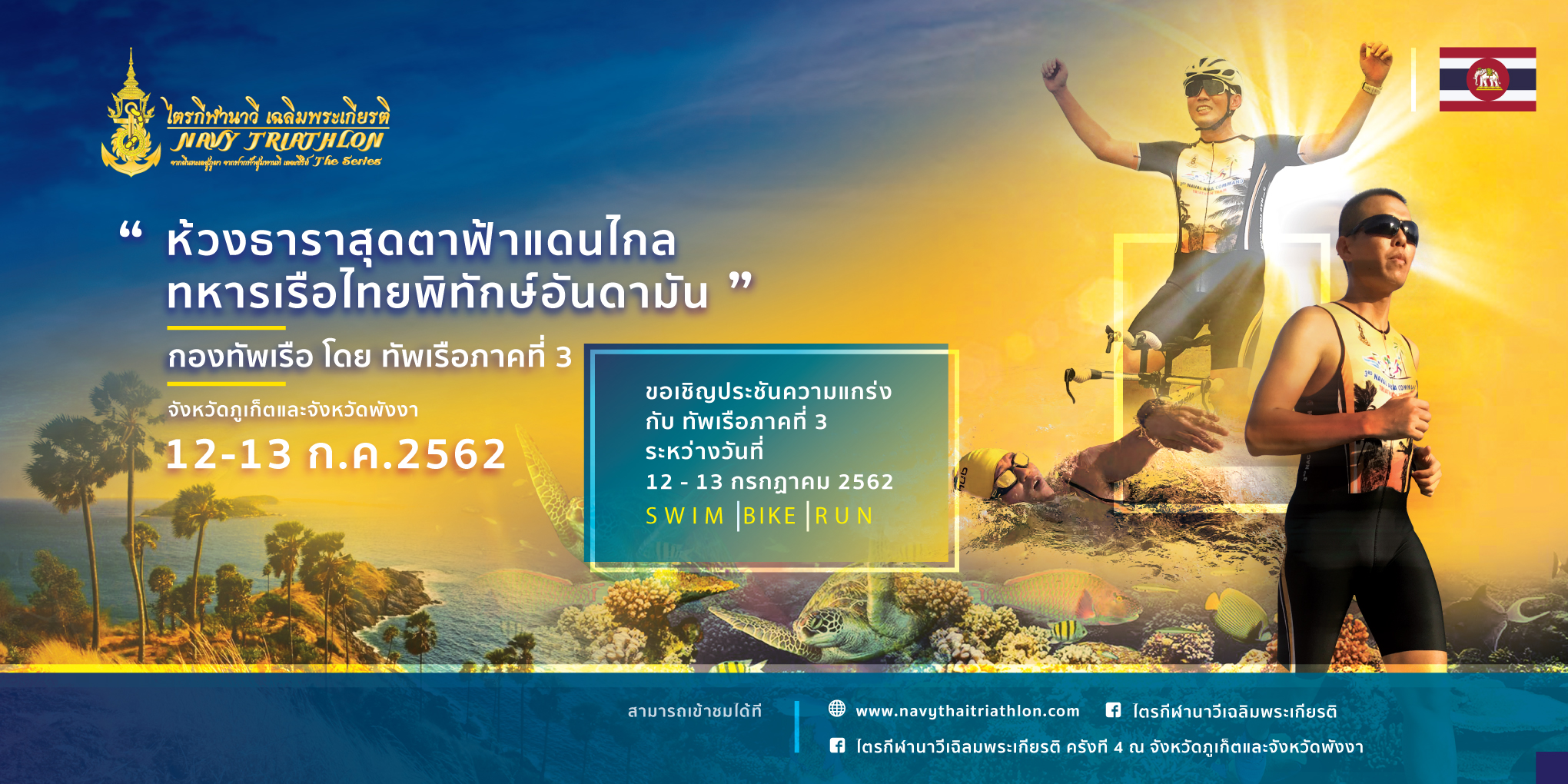 กำหนดการแข่งขันวันในเสาร์ที่ 13 กรกฎาคม 2562 มีวัตถุประสงค์เพื่อเป็นการเฉลิมพระเกียรติสมเด็จพระเจ้าอยู่หัวมหาวชิราลงกรณ์ บดินทรเทพยวรางกูร เนื่องในวันพระราชสมภพ 28 กรกฎาคม โดยมอบหมายให้ ทัพเรือภาคที่ 3 เป็นเจ้าภาพจัดการแข่งขัน โดยสถานที่ปล่อยตัวในการว่ายน้ำคือหาดปากพระ บริเวณสะพานสารสิน จังหวัดภูเก็ต เส้นทางปั่นจักรยานบริเวณชายทะเลหาดนาใต้ ต.โคกกลอย อ.ตะกั่วทุ่ง จว.พังงา และเส้นทางวิ่งจะผ่านสะพานสารสิน ซึ่งเป็นสะพานที่เชื่อมระหว่าง จว.พังงา และ จว.ภูเก็ต โดยกำหนดเส้นชัยอยู่ที่ประตูเมืองภูเก็ต จังหวัดภูเก็ต